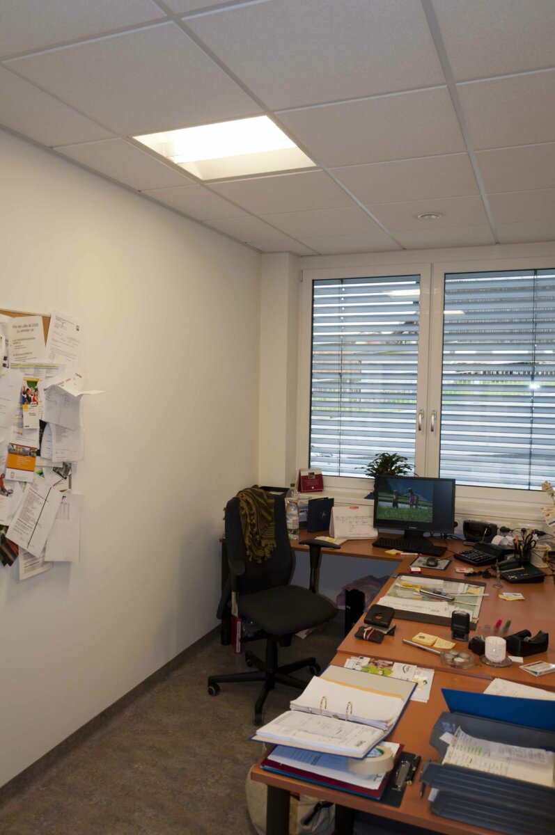 • Für die Beschattung wurden Außenjalousien (Raffstore) angebracht, um eine Überhitzung der Räumlichkeiten zu vermeiden. Im Bereich der Fluchtwegstüren, wo keine Außenjalousien angebracht werden können, wurde ein Sonnenschutzglas angebracht.