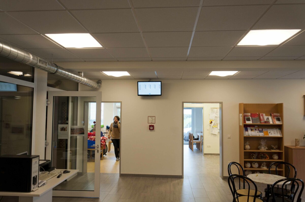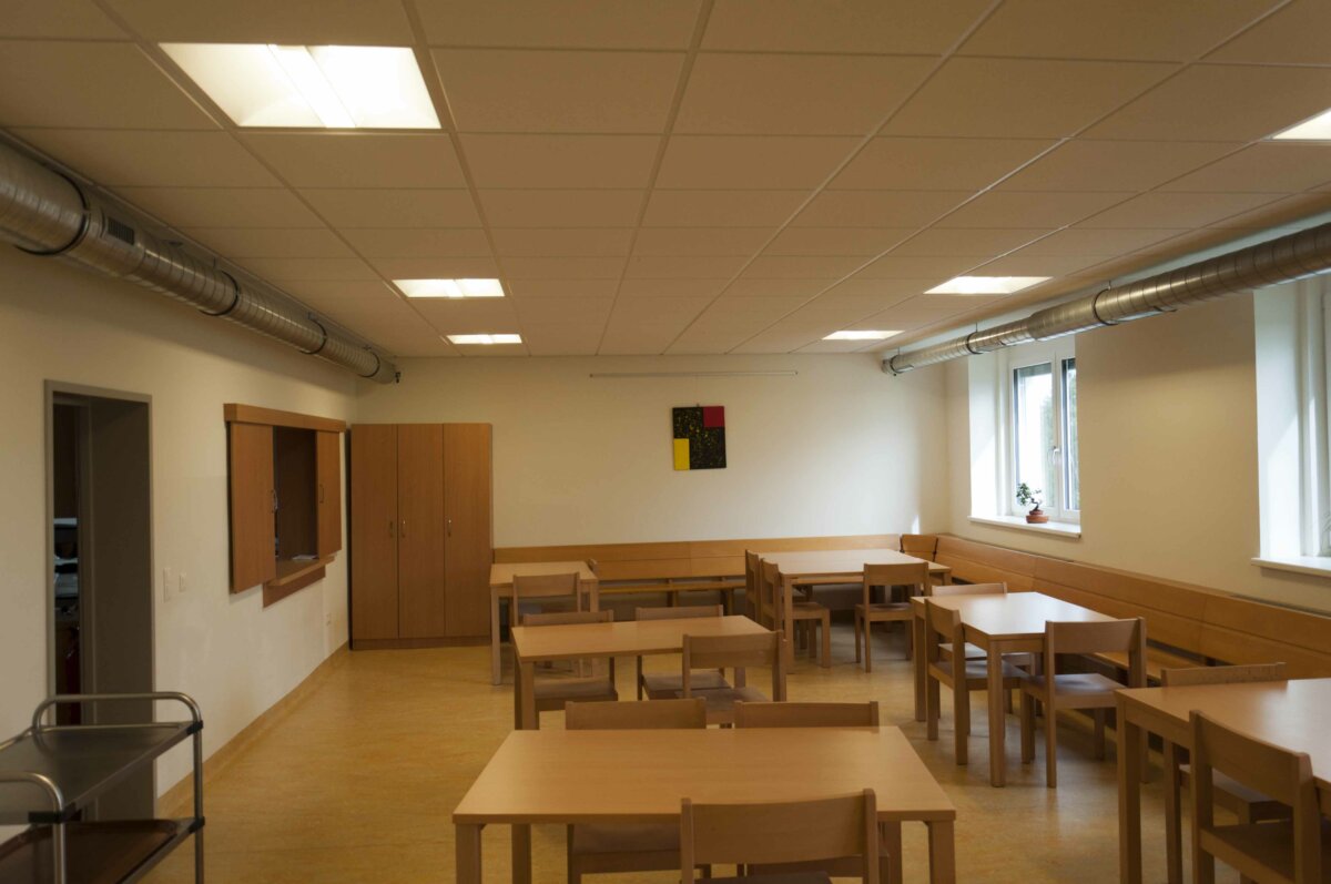 • Das Gebäude dient als Werkstatt für Menschen mit kognitiver und Mehrfachbehinderung. Sogenannte Tagesheimstätten bieten Menschen mit Behinderung eine sinnvolle Beschäftigung tagsüber, welche so weit als möglich einer beruflichen Tätigkeit entsprechen soll. Soweit erforderlich wird in dieser Einrichtung auch die notwendige Unterstützung, Pflege und Betreuung tagsüber sichergestellt (Essen, Körperpflege). In etwa 60 Personen sollen nach Fertigstellung des Objekts in dieser Form betreut werden.