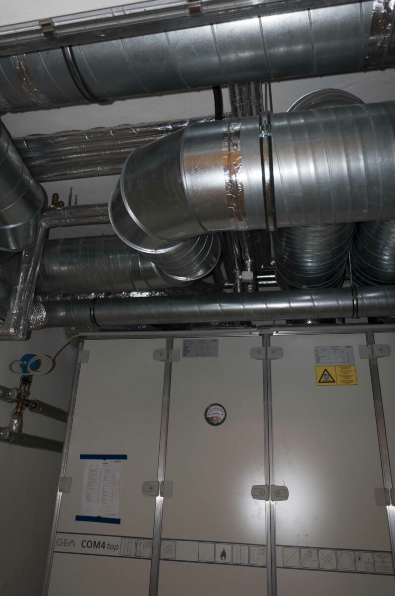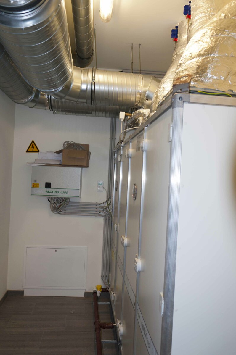 Eine kontrollierte Wohnraumlüftung mit einem Wärmerückgewinnungsgrad von 88 % wird zur energetischen Gebäudeoptimierung eingebaut.