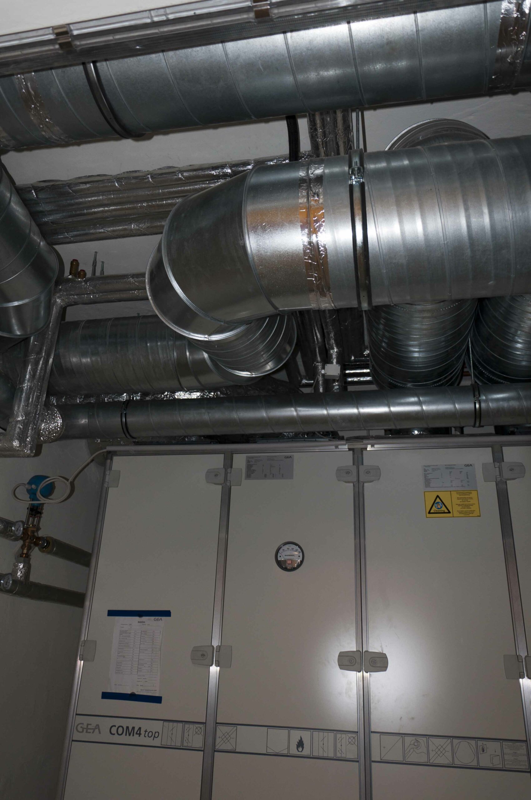 • Die neue Lüftungsanlage mit Wärmerückgewinnung mittels Kreuzstromplattenwärmetauscher (Nennleistung von 4kW) weist einen Wirkungsgrad von 88% bei gegebener Nennluftmenge auf. Ein Luft-Erdreich-Wärmetauscher wurde nicht berücksichtigt.
