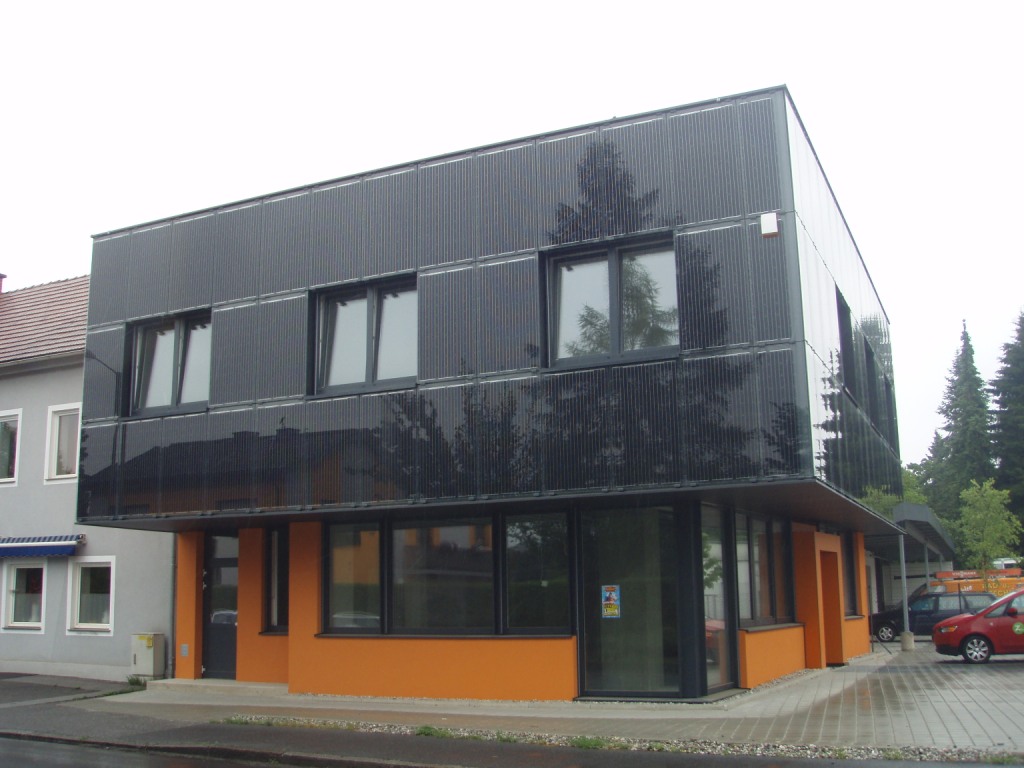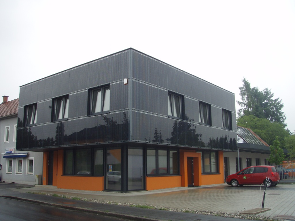 - Anlage Am Flachdach der Lagerhalle sowie an den gebäudeintegrierten Fassadenflächen wurde eine Photovoltaikanlage mit einer Leistung von 30 kWpeak mit 271 m² installiert.