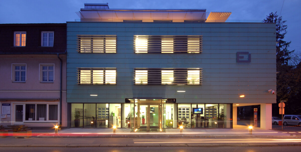 Die Aussicht auf ein zeitgemäßes Bürogebäude mit hoher Arbeitsplatzqualität für die Mitarbeiterinnen und Miterabeiter, war für den Immobilienunternehmer Paul Edlauer das Motiv, den alten Bürostandort im Zentrum St.Pöltens zu verlassen. In der Josefstraße fand sich 2006 das geeignete Objekt, Baujahr 1962, für dessen Sanierung auf Niedrigenergiehaus- Standard ein geladener Architektenwettbewerb ausgeschrieben wurde. Nach einer Bauzeit von einem Jahr, konnte das fertig sanierte Objekt Mitte 2009 bezogen werden. Fußbodenheizung/-kühlung tragen ebenso wie die Komfortlüftung zum angenehmen Raumklima bei, wobei die Wärme von der Fernwärme und die Kälte aus dem Grundwasser durch Direktkühlung bezogen werden. Energieeffiziente Leuchten, außenliegende Verschattungen und Nachtauskühlung durch Fensterlüftung ergänzen das Energiekonzept.