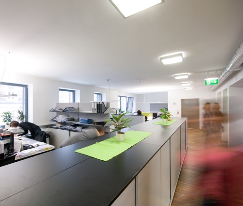 • Deutliche Steigerung des Innenraumkomforts an den Arbeitsplätzen durch Flächenheizung/-kühlung und Komfortlüftung.