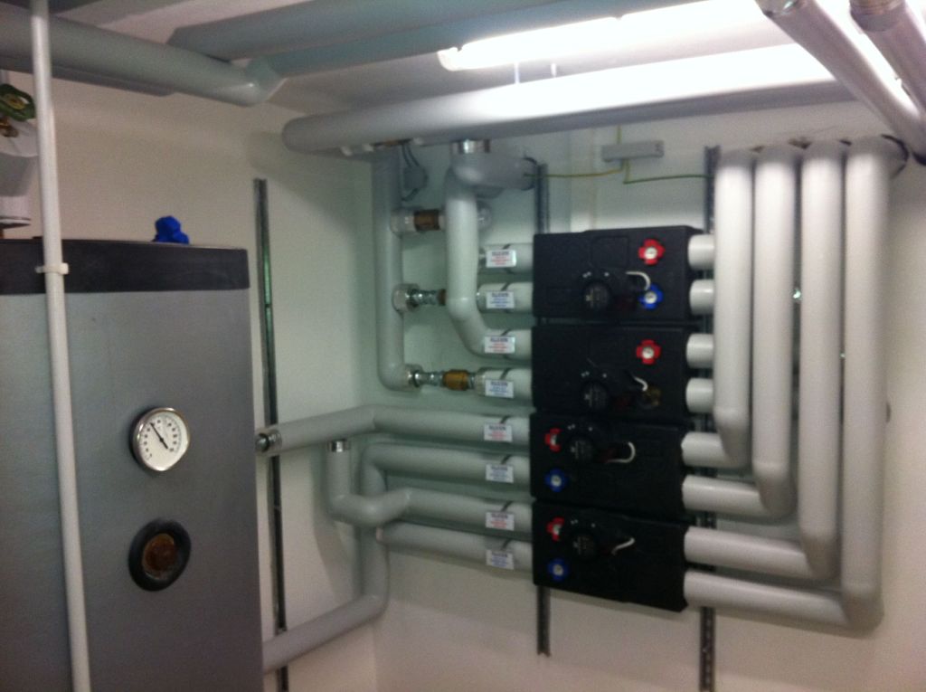 - Die Wärmeerzeugung erfolgt über eine Luft- Wasser Wärmepumpe, die Wärmeabgabe erfolgt über Fußbodenheizung
