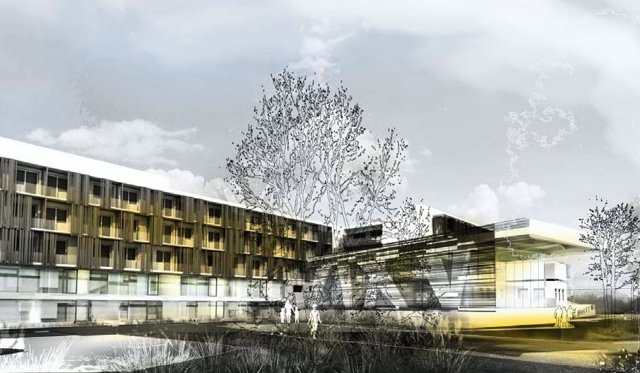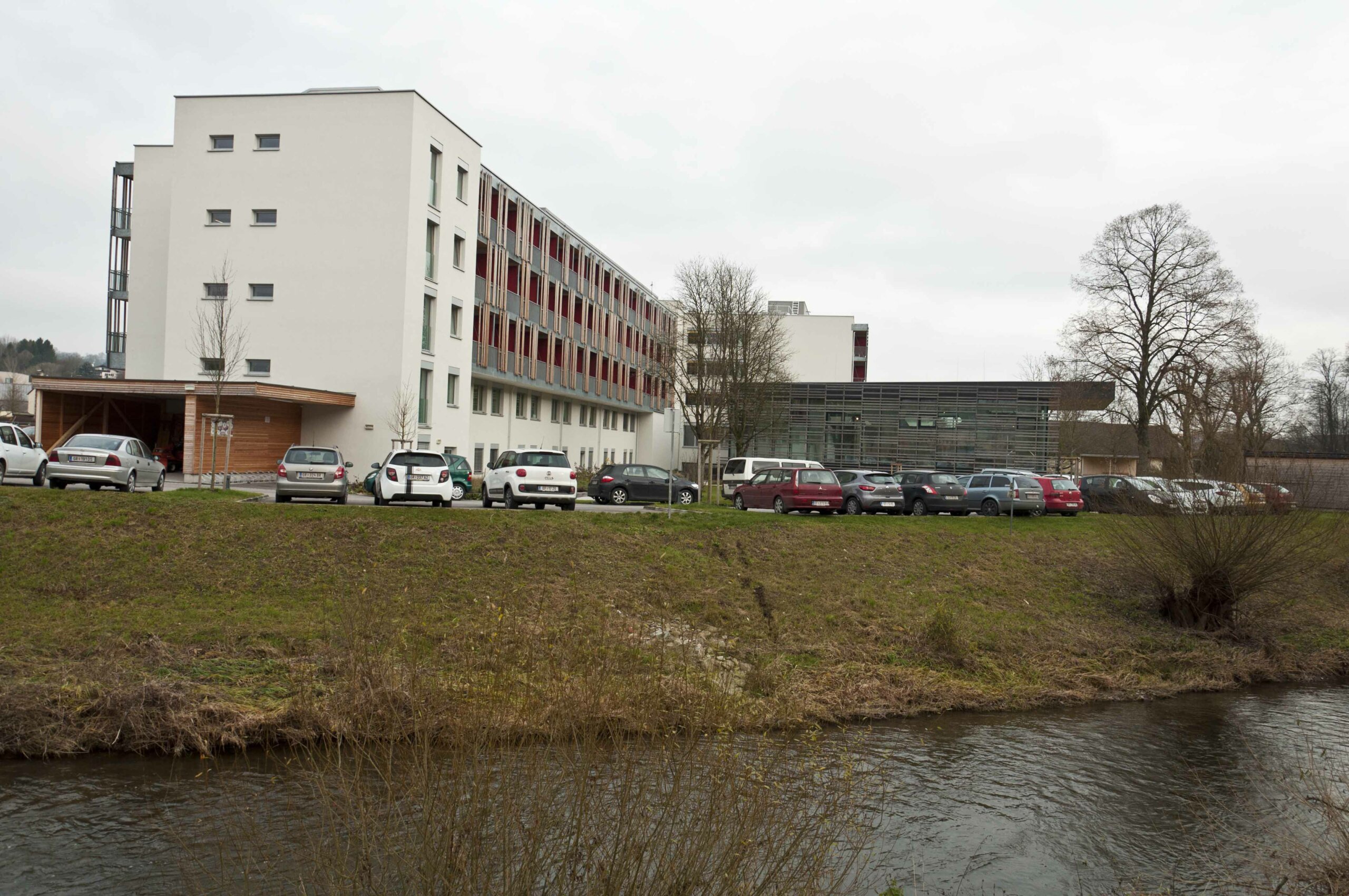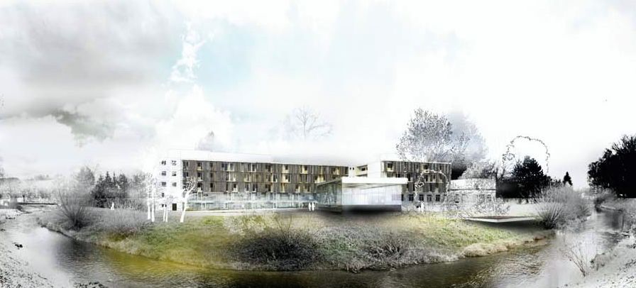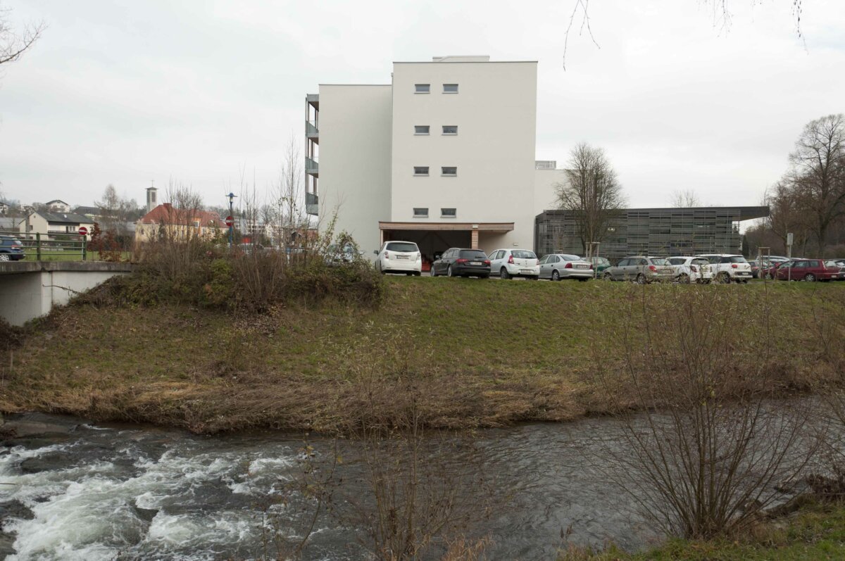 • Das 1968 in Betrieb genommene Gebäude diente zuerst dem reinen Beherbergungsbetrieb. Kurgäste nutzten die nahe Therme zum Baden und Entspannen. Seit den 90er Jahren gab es, nach einem Umbau, Therapieräumlichkeiten.Das ungedämmte Gebäude in Ziegelbauweise war durch den „Kasernen-Look“ nicht mehr zeitgemäß. Auch wurde der Gang an der Nordfassade nur zur Erschließung der Zimmer verwendet; das war weder energieeffizient noch platzsparend.