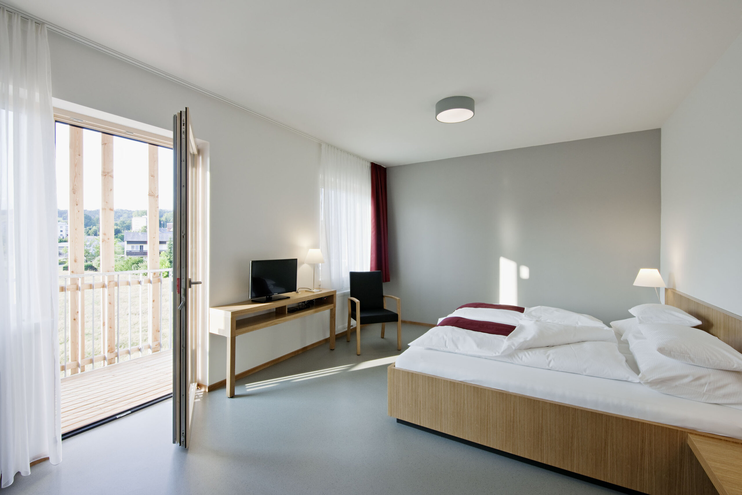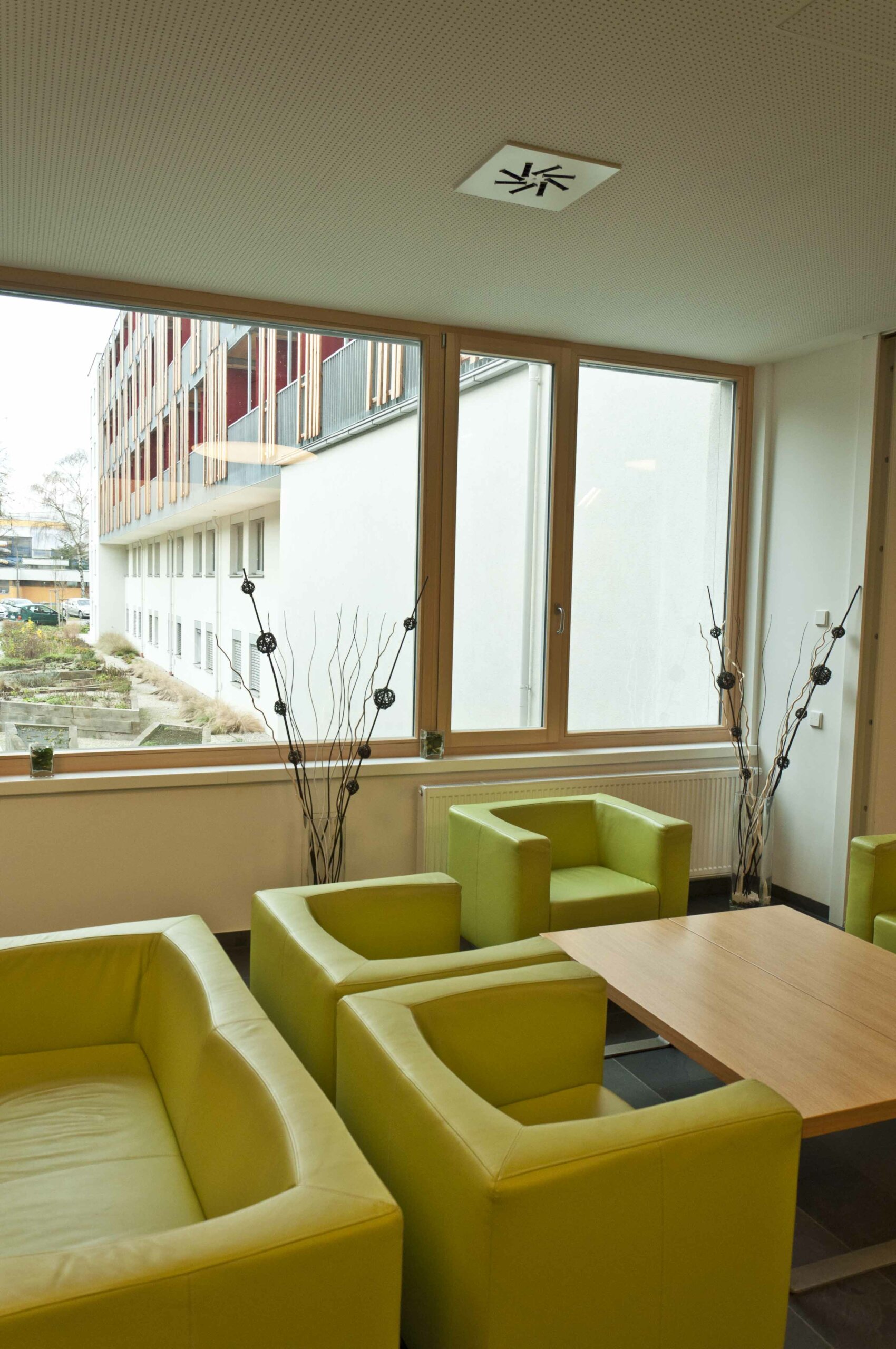 • Die ökologische Bauweise soll den Gebäudenutzern, Patienten, Pflegern aber auch der Hausverwaltung, durch die Sichtbarmachung (sichtbare Holzdecke, gestalterische Fassadenelemente) bewusst gemacht werden.