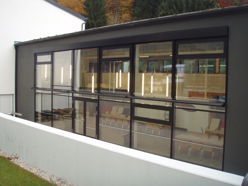- Die bestehenden Fenster, mit einem durchschnittlichen U-Wert von 2,56 W/(m²K), wurden durch neue Alu-Fenster, mit einem U-Wert von 1,21 W/(m²K), ersetzt.
