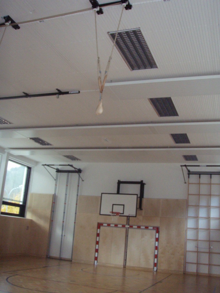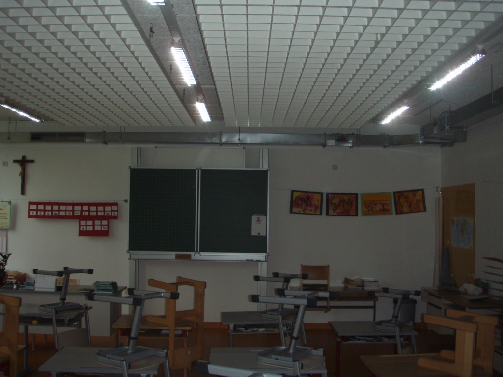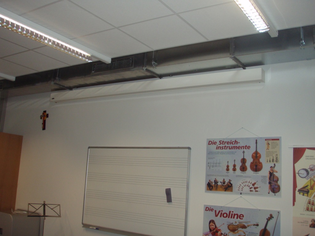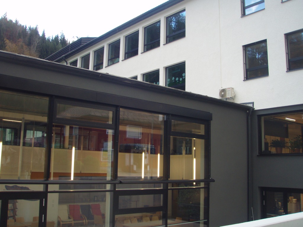- Im Zuge der Sanierung wurde in das Schulgebäude eine mechanische Be- und Entlüftungsanlage für die Versorgung der Hauptaufenthaltsräume eingebaut. Der Wirkungsgrad der Wärmerückgewinnung beträgt ca. 85%.