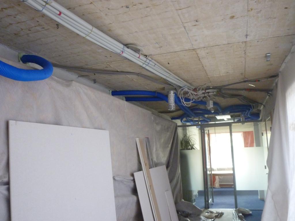- Parallel dazu erfolgten innerhalb des Hauses Abbrucharbeiten (zB. Leuchtenausbau, Demontage/Montage Gipskartondecken im Gangbereich)