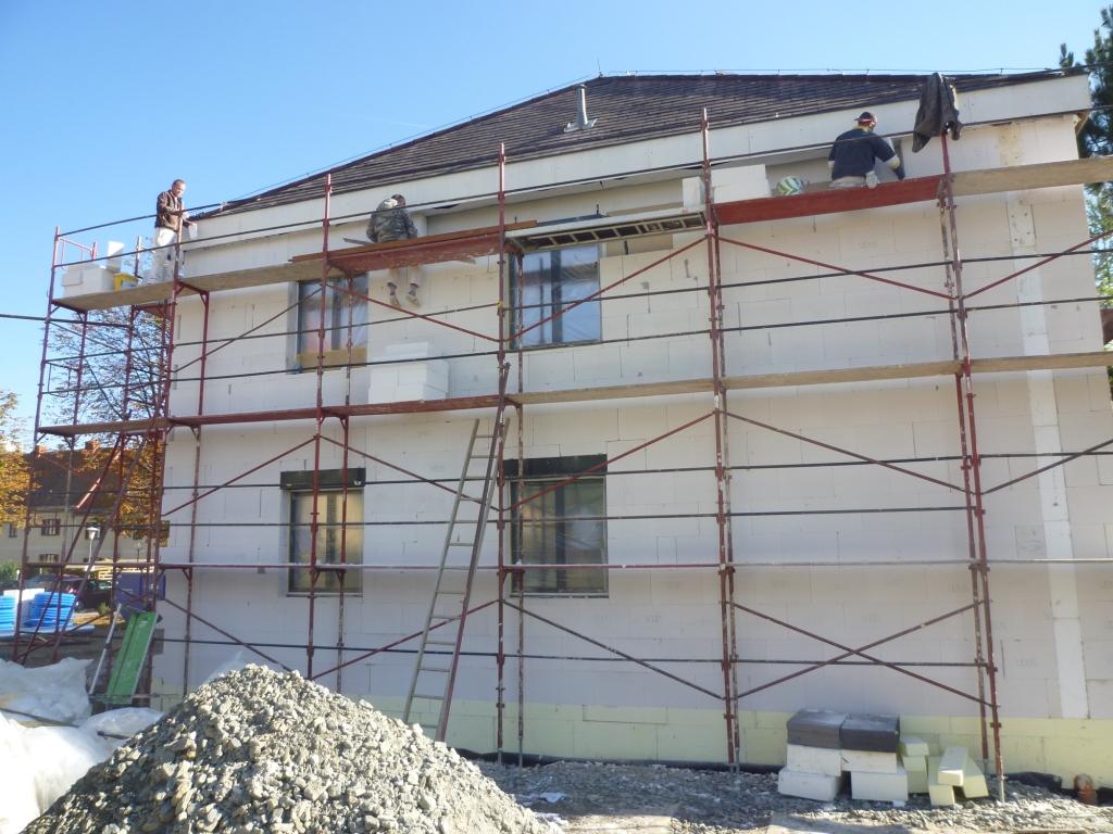- Fertigstellung Fassade,Fertigstellung Randleisten Traufenpflaster am Gebäude