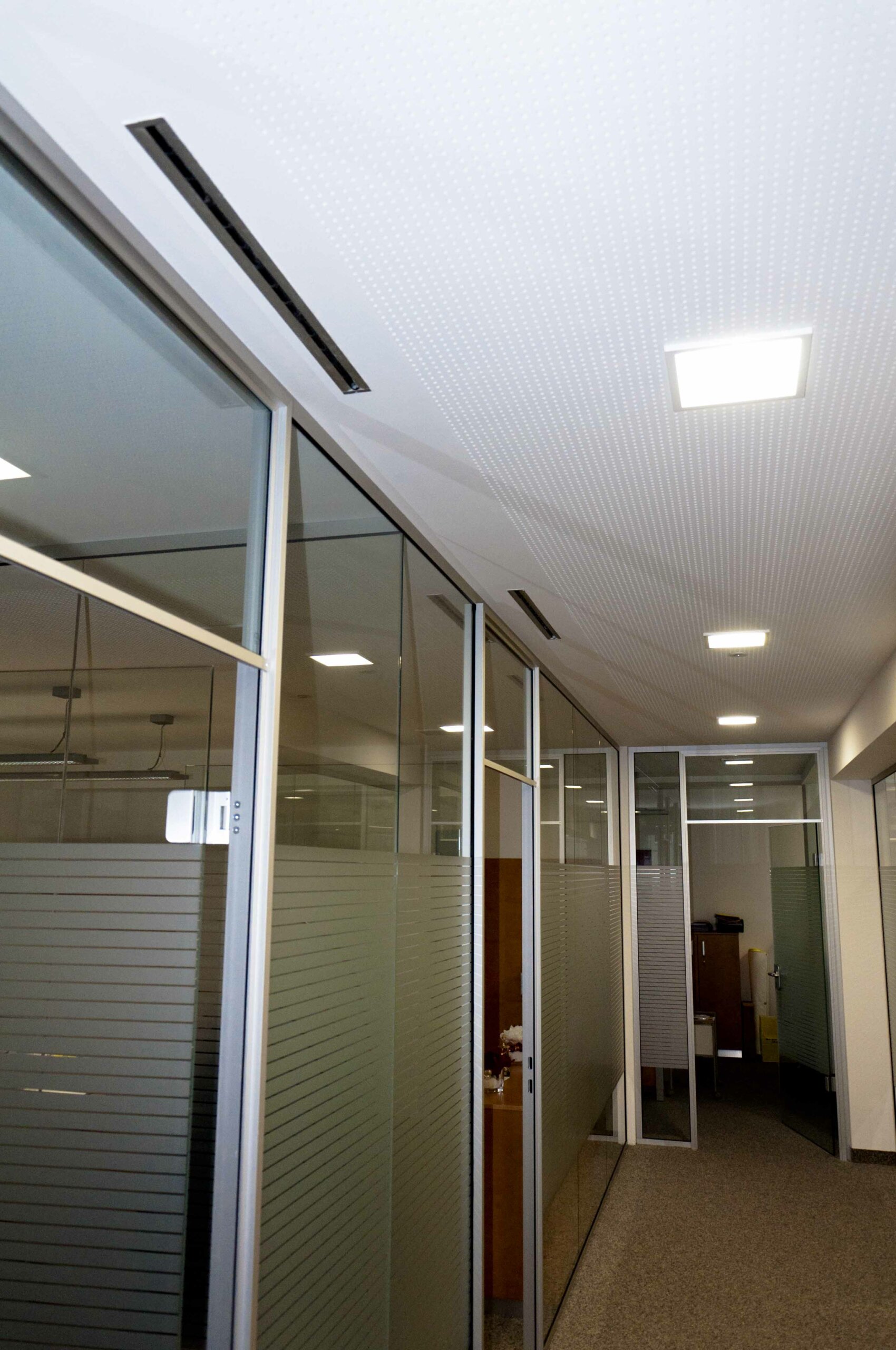 - Die Lüftungsanlage dient auch als notwendige Stützlüftung zur Vermeidung von Kondensatbildung an den Kühldecken.