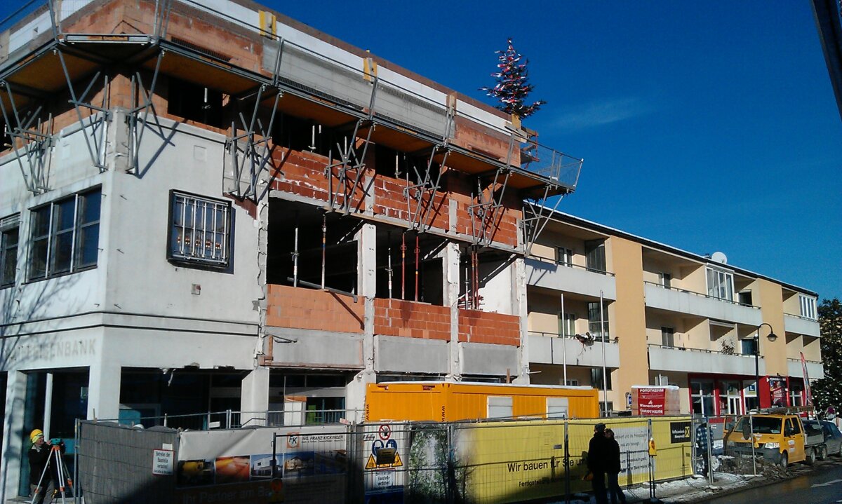 Die Filiale der Raiffeisenbank Wienerwald in Preßbaum wird einer thermischen Sanierung und einer Erweiterung der Bruttogrundfläche von 1.255 m² auf 1.501 m² unterzogen.