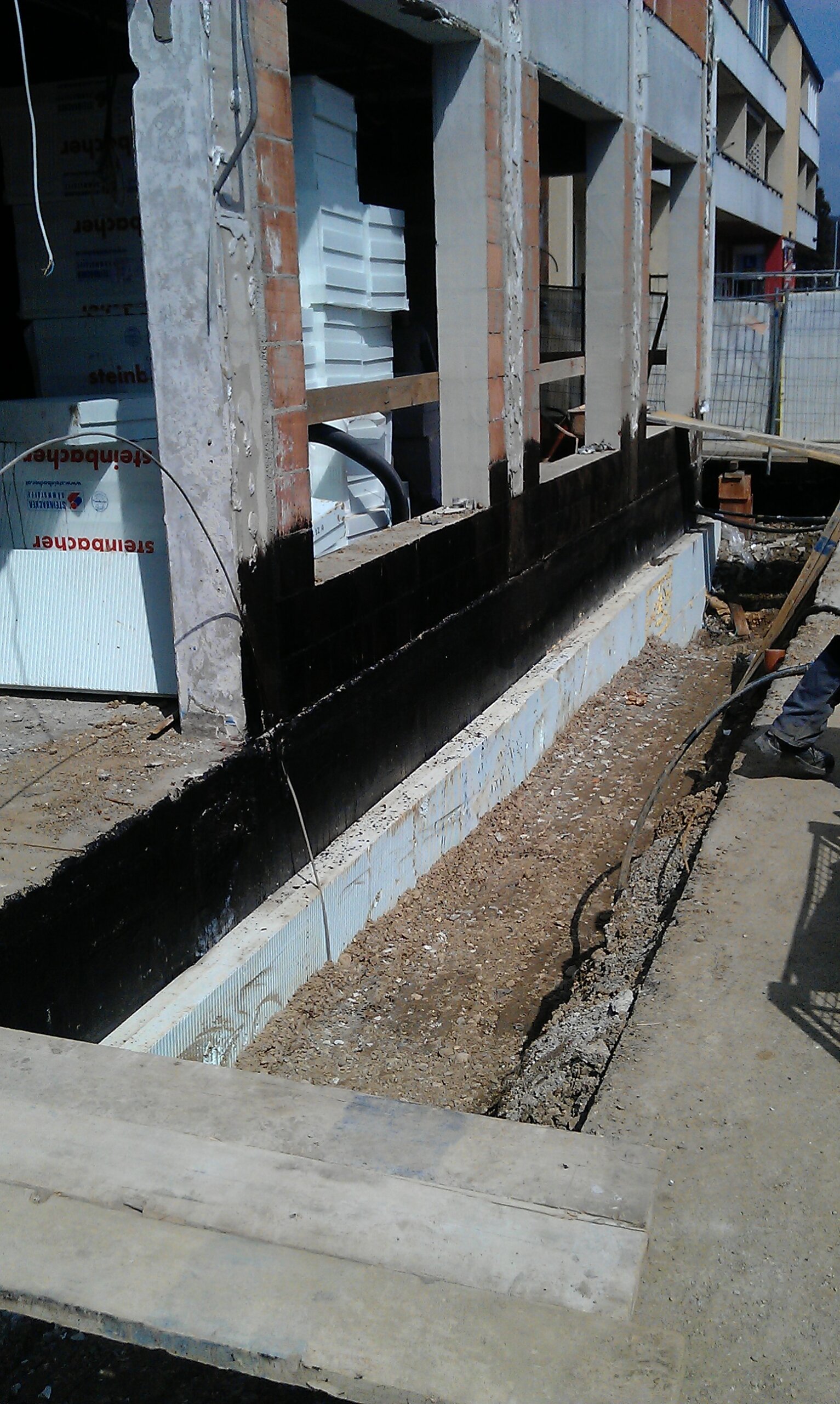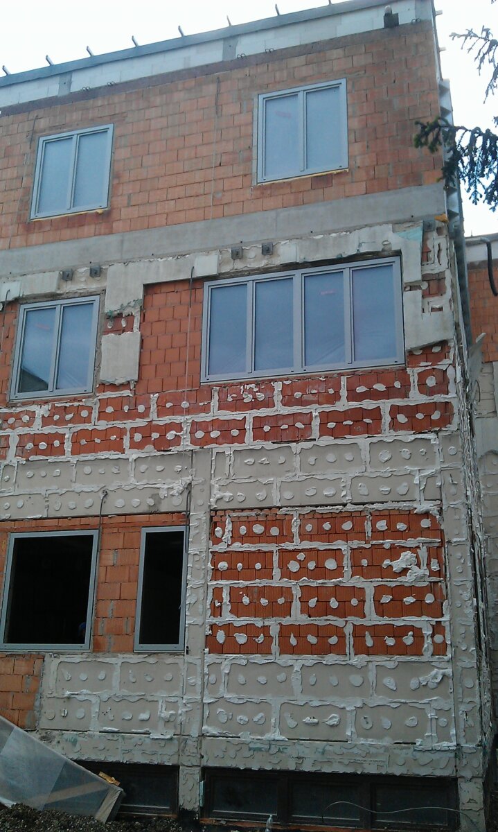 - Zur Dämmung der thermischen Hülle waren Vakuumdämmplatten angedacht. Vakuumdämmung war allerdings zu teuer, daher wurden andere Lösungen bevorzugt, tlw. XPS od. Multipor