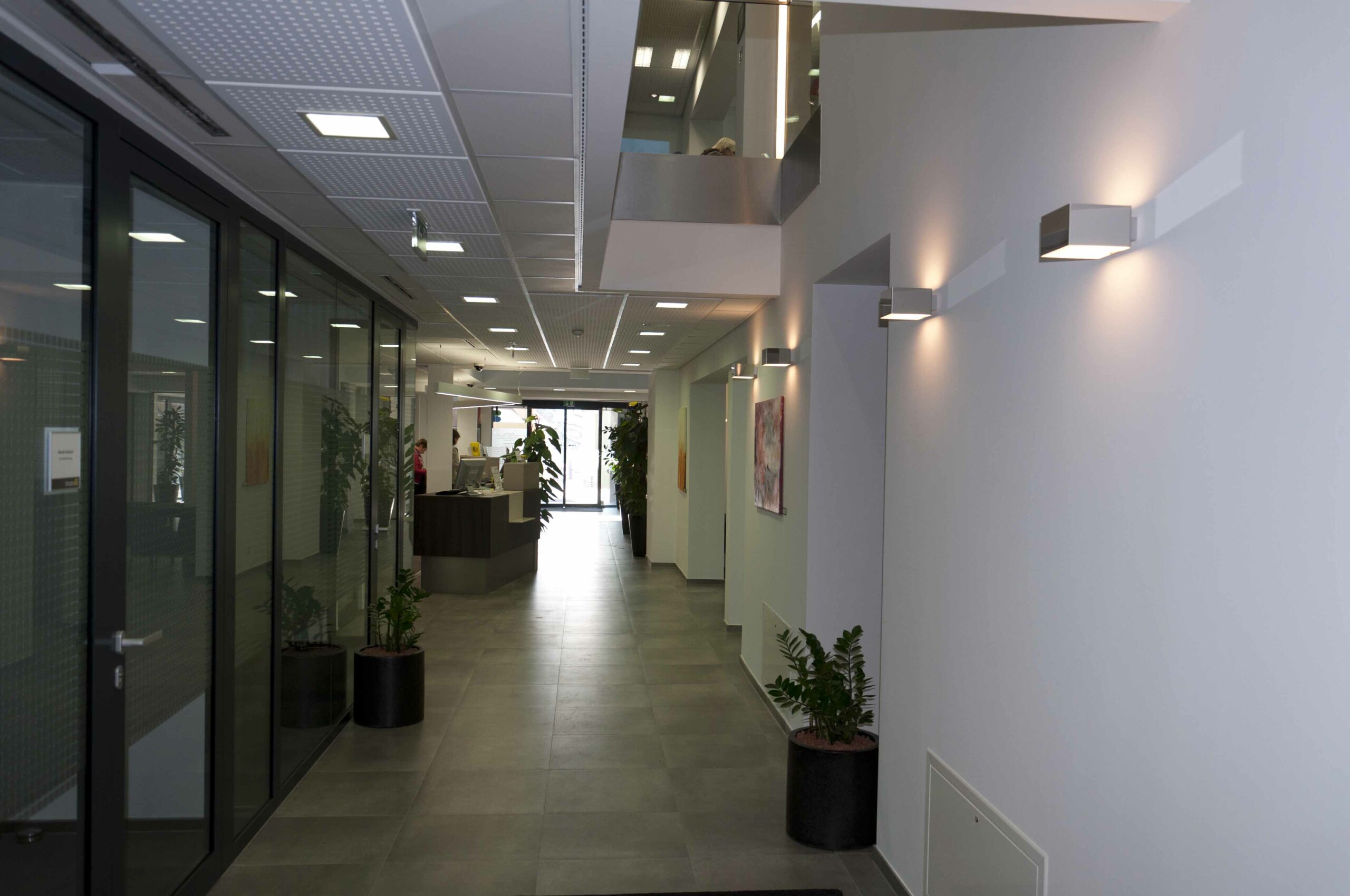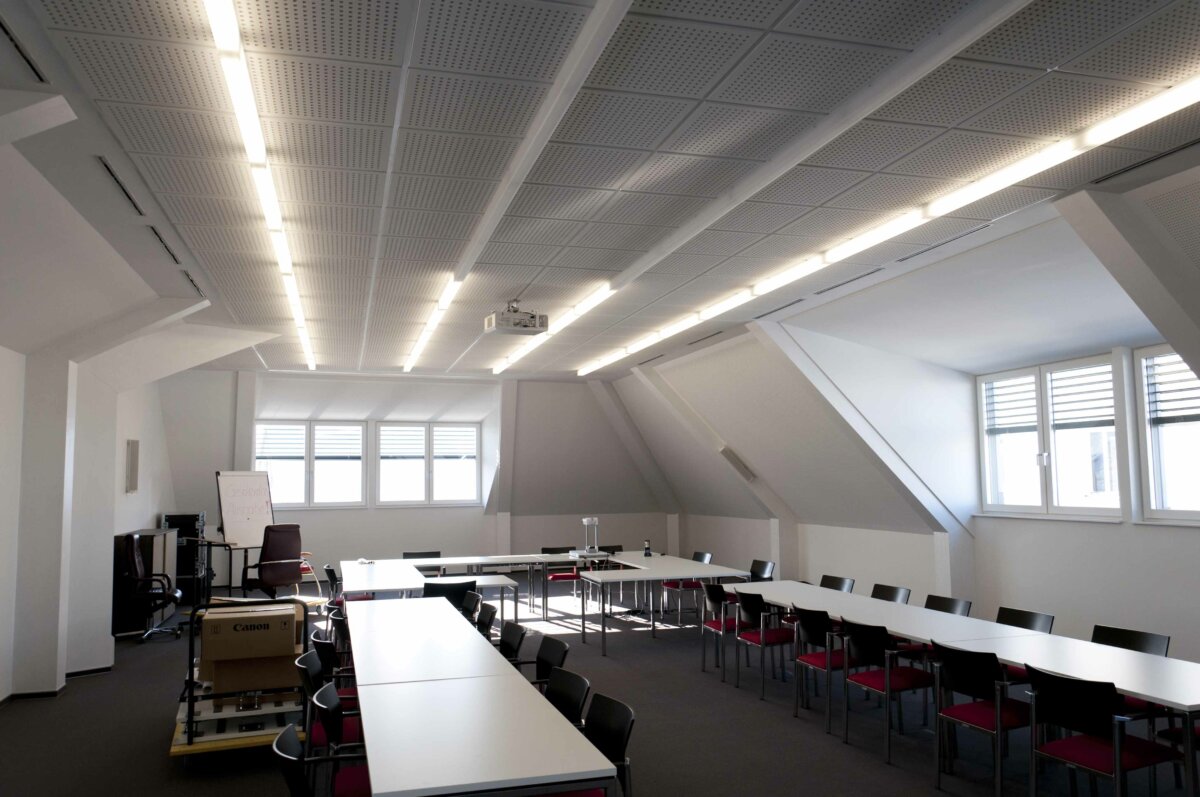 - Durch die Beleuchtungsoptimierung, die Stille Kühldecke und die PV-Anlage kann der Netz-Strombezug um ca. 24 MWh/a verringert werden.