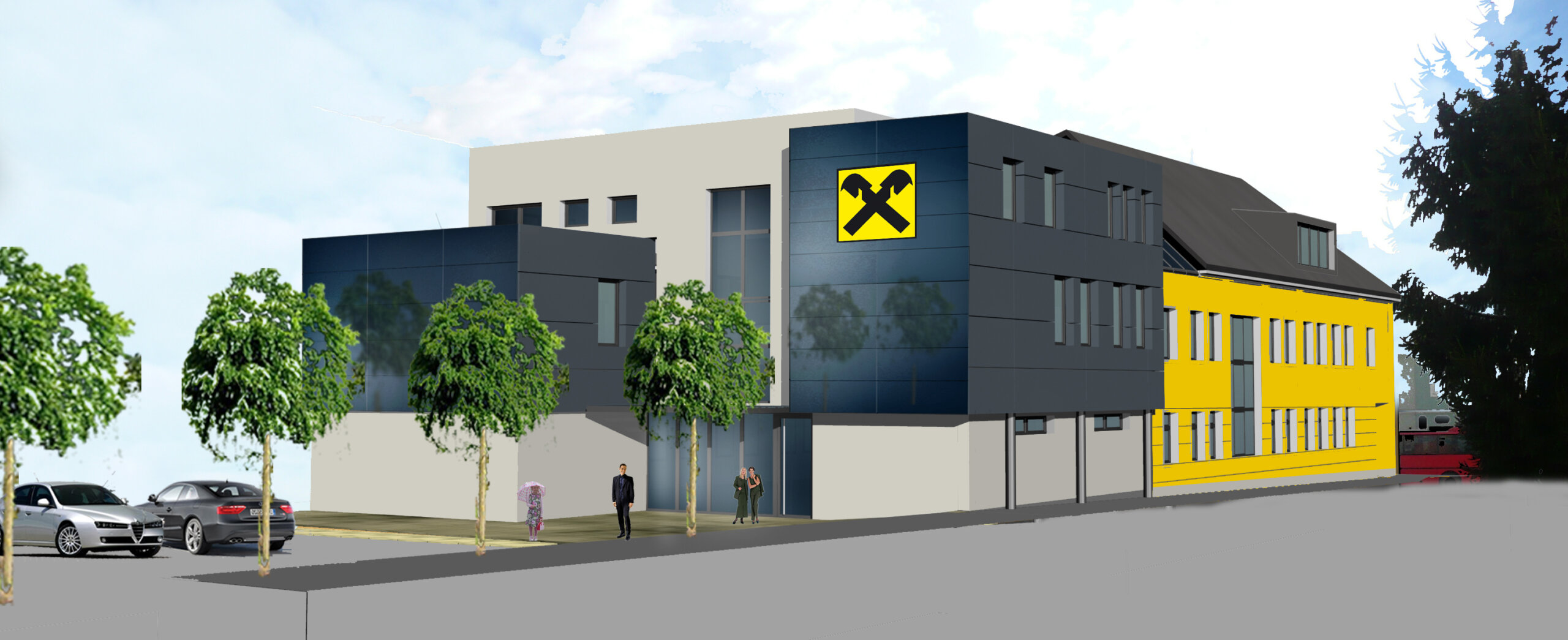 Das ursprüngliche Gebäude der Raiffeisenbank Strass-Spielfeld wird einer thermischen Sanierung unterzogen und aufgrund des gestiegenen Raumbedarfs von 1.117m² auf 1.886 m² Nutzfläche erweitert.
