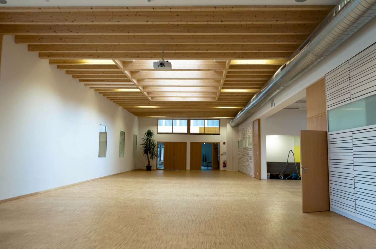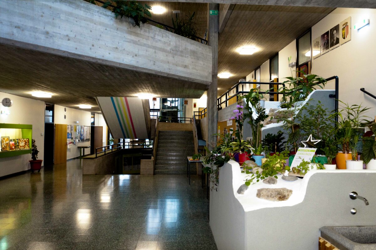 - Die neu geschaffene Mehrzweckhalle zwischen Volks- und Neuer Mittelschule bildet einen tollen Platz zum Ausspannen, Kommunizieren für Veranstaltungen uvm.