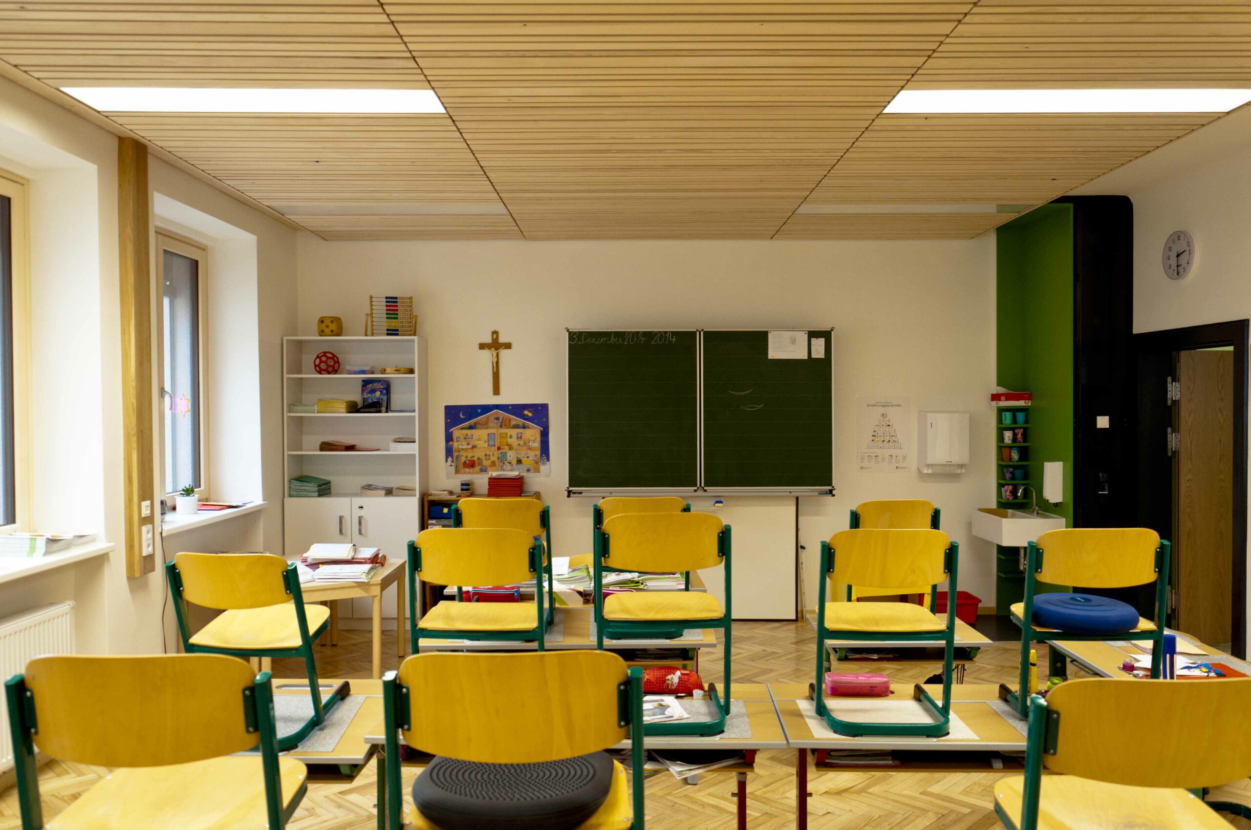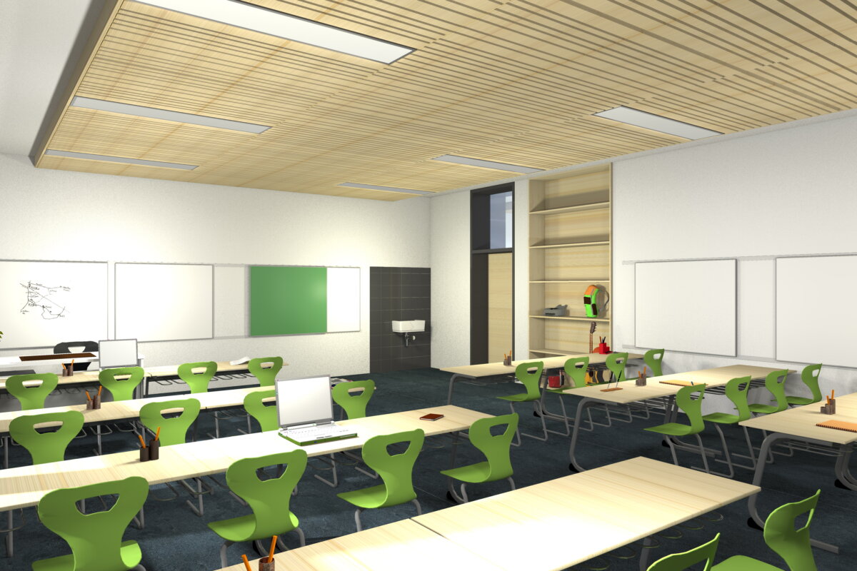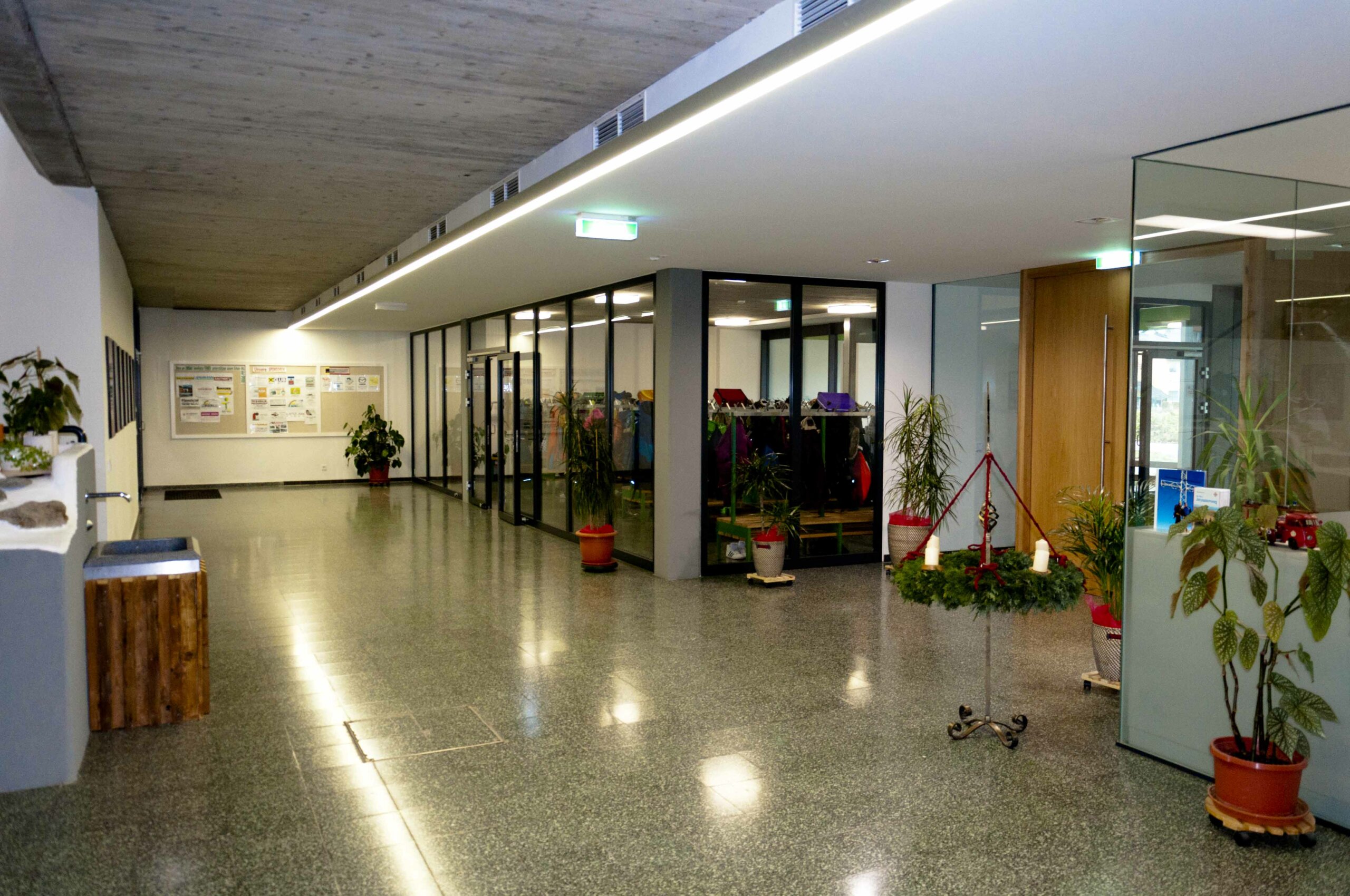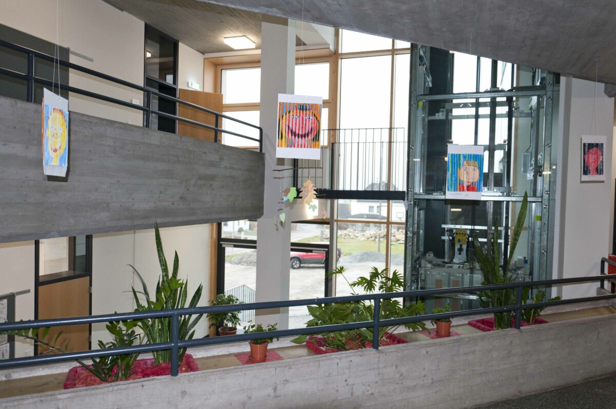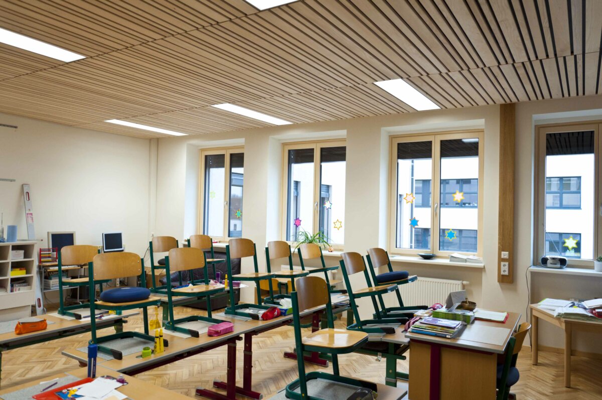 - Die Akustikdecke am Gang der Volksschule wird als sehr angenehm empfunden.