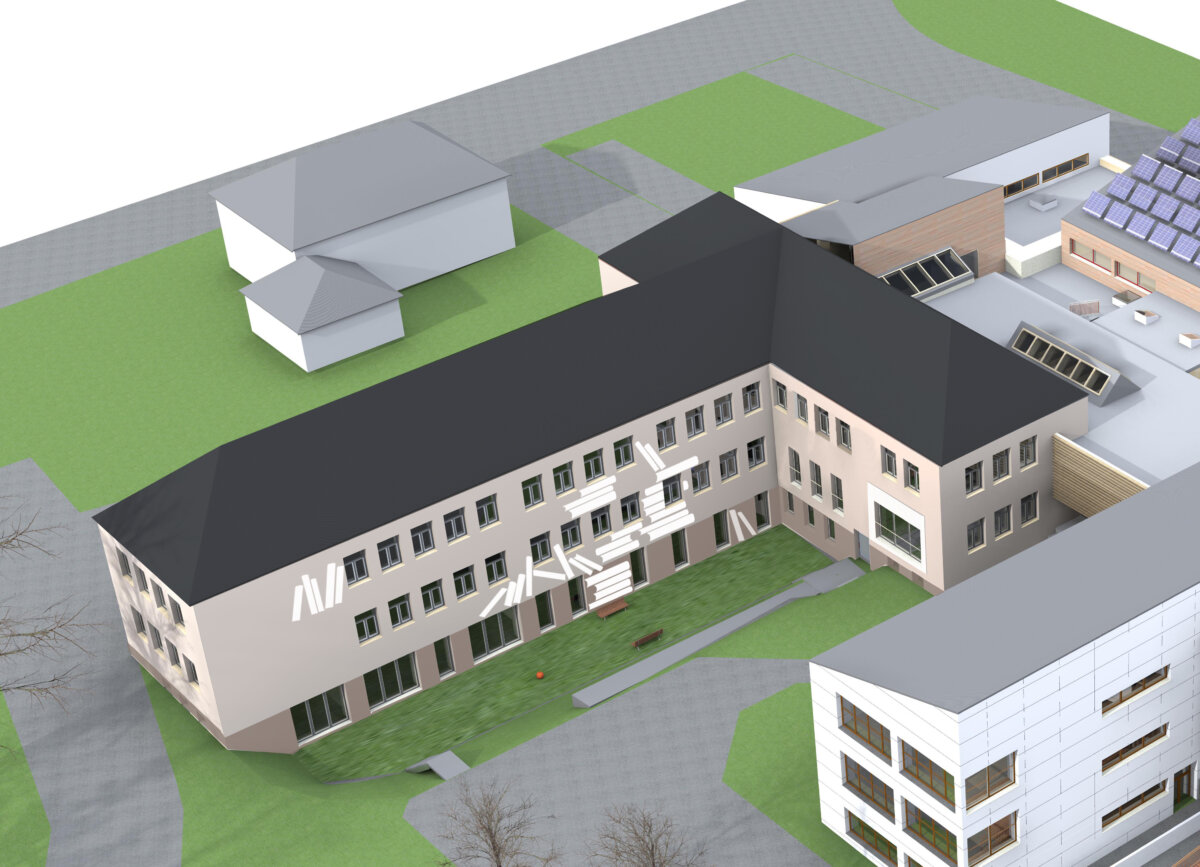 - Im Zuge der Sanierung werden die Gebäude erweitert. Im Endausbau werden rund 6.375,7 m² zur Verfügung stehen.