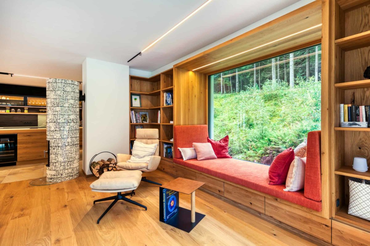 - Die Zielsetzung war trotz der Umstrukturierung bzw. Zuordnung der Neunutzung als Hotel, die bestehende Gebäudesubstanz weitgehend zu erhalten. Die Sanierungsmaßnahmen, neue Tür- und Fensterkonstruktionen sowie neue Fassadendämmung, Sanierung erdanliegender Böden bzw. Kellerdecken und Adaptierung der Dachbodendämmung konnten in einer „Bauphase“ durchgeführt werden. Die Umstrukturierung des Heizungssystems stellte sich als die größte Herausforderung dar. Ein Anschluss an die Fernwärme war aufgrund der exponierten Lage leider nicht möglich. Bei der Entscheidung für eine Sole-/ Wasser-Wärmepumpe (inklusive Tiefenbohrung) wurde von einer Langzeitlösung ausgegangen, die sich bereits bewährt hat. Die 12,2 kWp-PV-Anlage ist für den Hotelbetrieb optimal geeignet und zeichnet sich durch einen hohen Eigenverbrauchsanteil bei hohem Autarkiegrad aus.