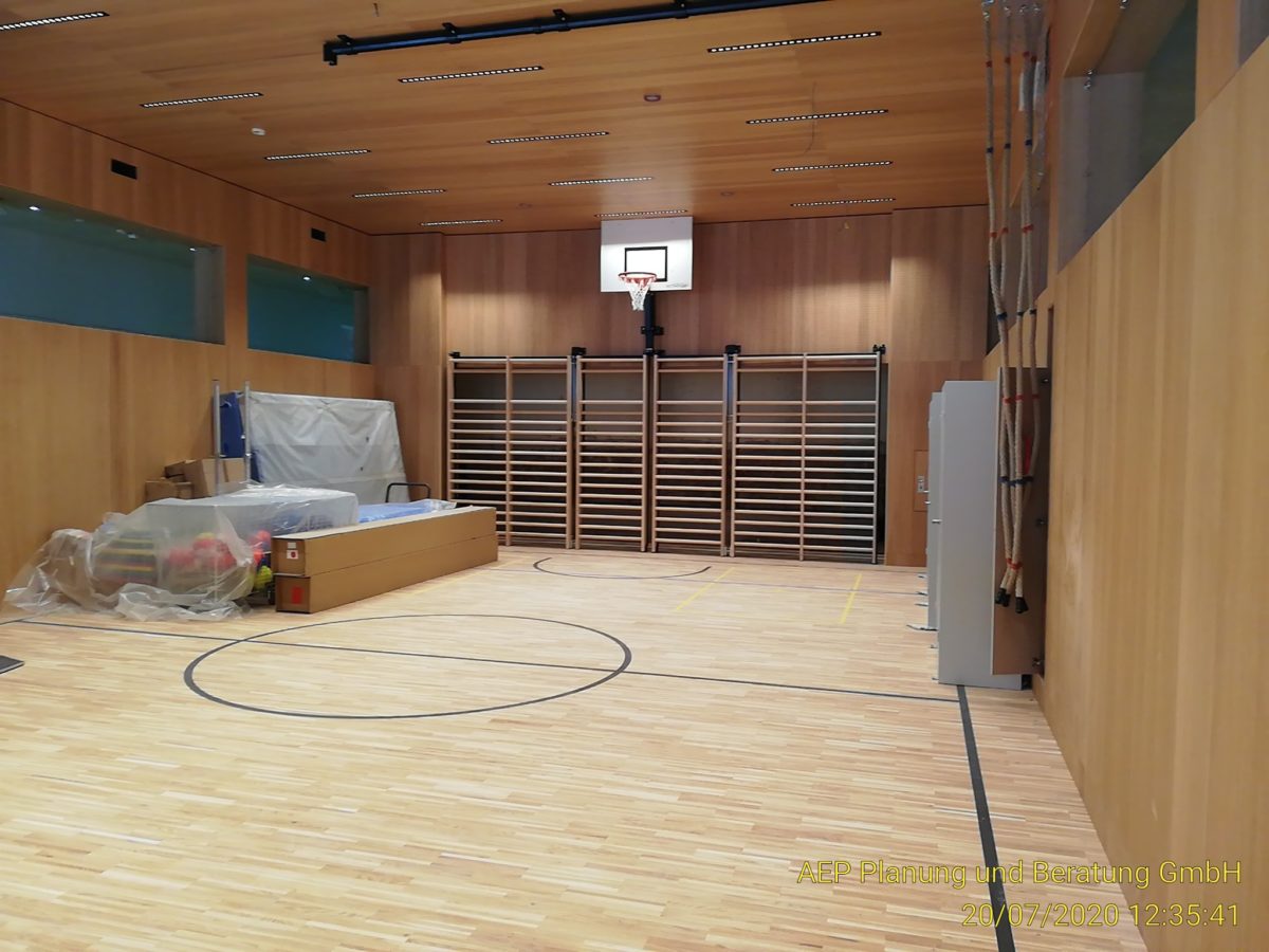 - Für die gesamte Volksschule ist ein zentraler Niederspannungs-Hauptverteiler zur Sicherstellung der Starkstromversorgung gebaut worden. Darüber hinaus wurde eine PV-Anlage installiert. Die PV-Anlage umfasst ca. 140 PV-Module.