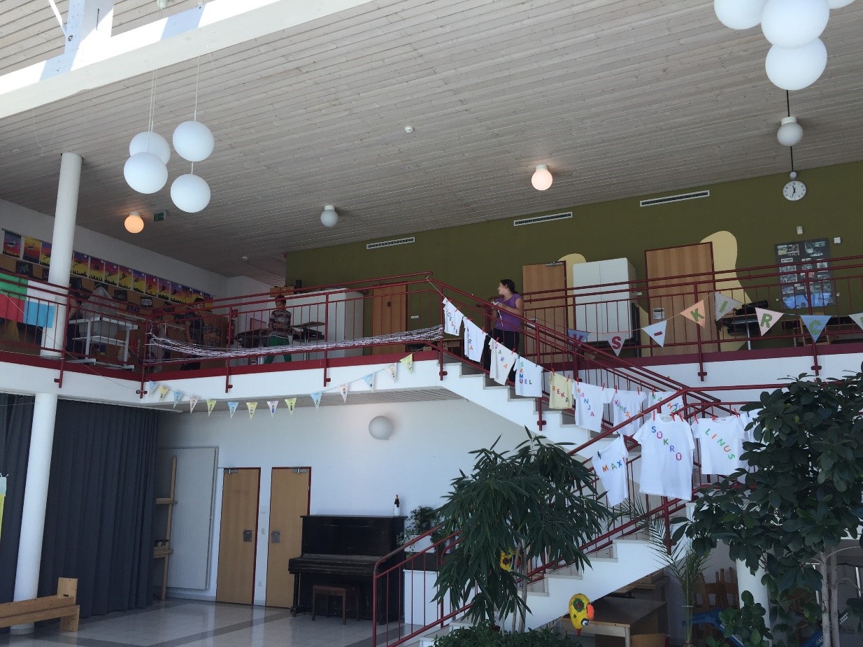 - Im Bestand gab es zuvor in der Turnhalle, der Aula und im Gangbereich je ein Lüftungsgerät. Diese Lüftungsgeräte wurden durch vier effiziente Lüftungsanlagen mit Wärmerückgewinnung ersetzt, welche die Klassen, den Turnsaal und die Aula mit vortemperierter Frischluft versorgen.
