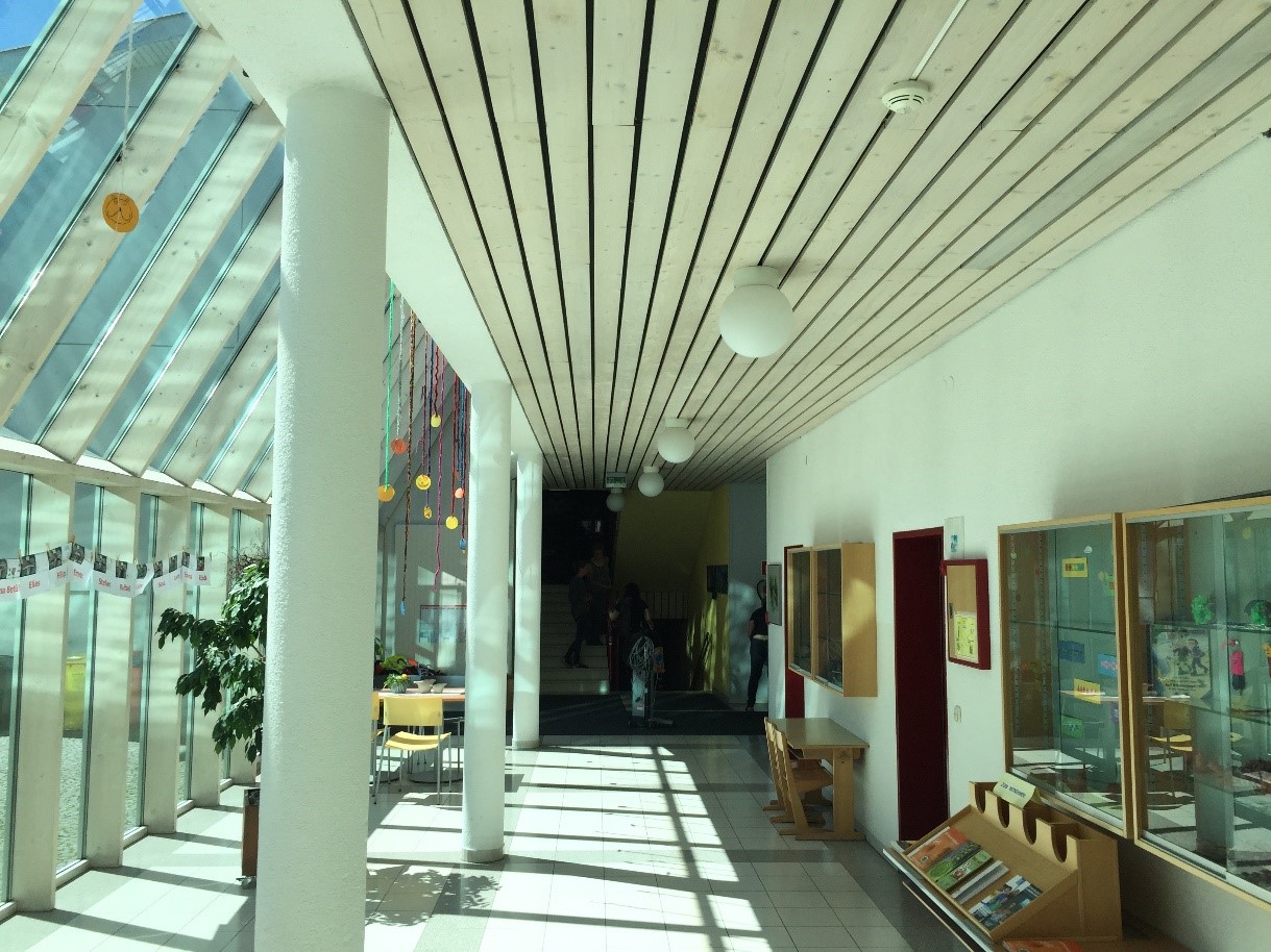 - Erdanliegende Fußböden, die Außenwände und das Dach bzw. die oberste Geschossdecke wurden gedämmt und die Fenster wurden erneuert. Ausnahme bilden hier nur die Fußböden im Musikprobelokal. Der Aula-Bereich wurde durch den Abbruch der Glasfassade neu gestaltet, es wurden neue Zwischendecken und Flachdächer ausgeführt.
