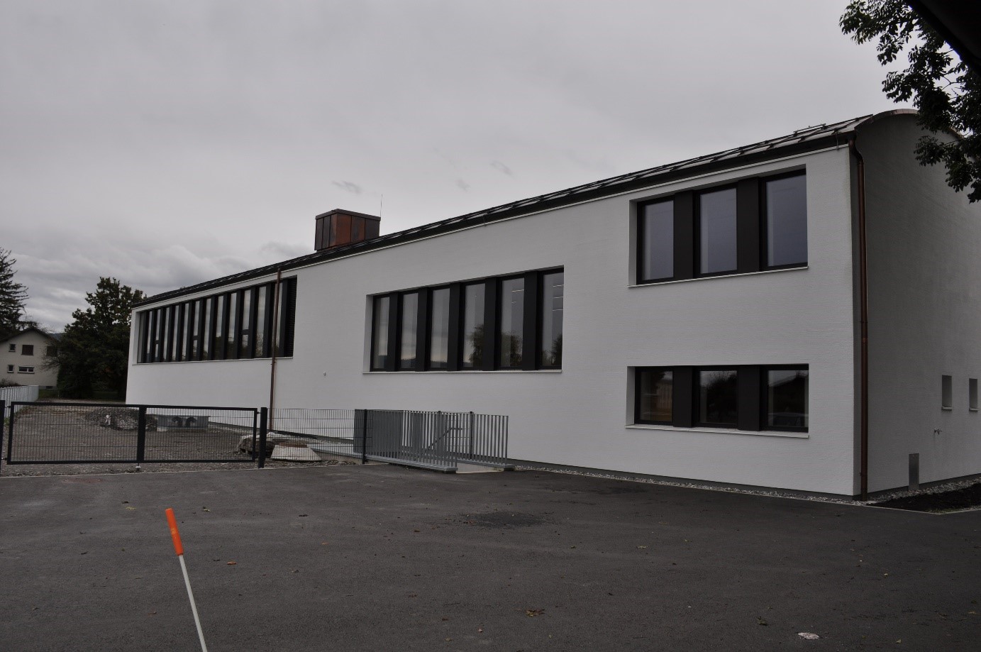 - Die Volksschule teilt sich in drei verschiedene Gebäudetrakte auf, den Trakt A aus dem Jahr 1966, der 1989 saniert wurde, den Trakt B sowie die Turnhalle und das Musikprobelokal (Trakt C) welche 1989 errichtet wurden. Die vorgenommene umfassende Sanierung betraf die 1989 errichteten Trakte B und C, der 1989 sanierte Trakt A wurde nicht thermisch saniert. Im Aula-Bereich wurde durch eine Umgestaltung die Grundfläche des Gebäudes erhöht. Das sanierte Gebäude umfasst darüber hinaus ein Musikprobelokal.